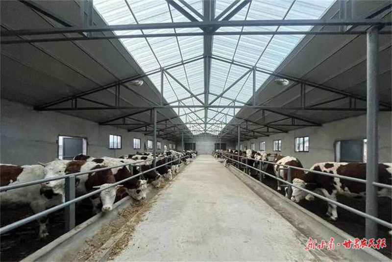 清晨的陽光灑滿山梁,華亭市安口鎮大坪村肉牛養殖基地里已響起陣陣牛鳴“哞……哞……”鋼構大棚整齊排列,毛色光亮的西門塔爾牛和平涼紅牛正悠閑進食,一旁的草料加工設備有序運轉,為牛群提供科學配比的營養餐。