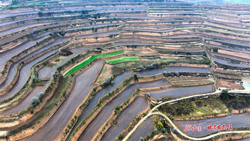初冬的莊浪大地,褪去金秋的斑斕,迎來一片壯觀的“銀色世界”。廣袤田野上,一行行、一壟壟新覆的地膜在陽光下熠熠生輝,猶如層層梯田披上了“越冬新衣”。