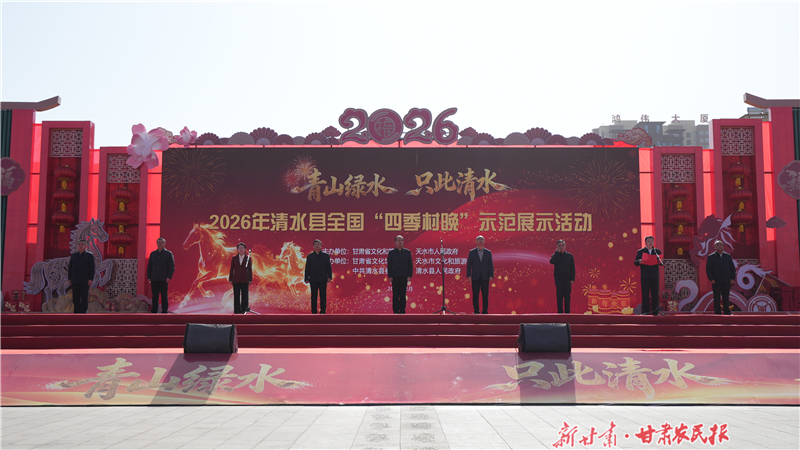 甘肅農(nóng)民網(wǎng)訊(新甘肅·甘肅農(nóng)民報(bào)記者 王倩)2月10日(農(nóng)歷小年)下午,清水縣全國(guó)春節(jié)“村晚”示范展示活動(dòng)暨全國(guó)南北小年“村晚”接力聯(lián)播活動(dòng)在天水市清水縣軒轅廣場(chǎng)舉行,標(biāo)志著甘肅省2026年“四季村晚”活動(dòng)的全面啟動(dòng)。本次活動(dòng)由甘肅省文化和旅游廳、天水市人民政府共同主辦,省文化館、天水市文化和旅游局、中共清水縣委、縣政府承辦。活動(dòng)當(dāng)日,近萬(wàn)名干部群眾現(xiàn)場(chǎng)參與,全網(wǎng)觀看量累計(jì)達(dá)878萬(wàn)人次,掀起了一場(chǎng)線上線下聯(lián)動(dòng)的群眾文化盛宴。