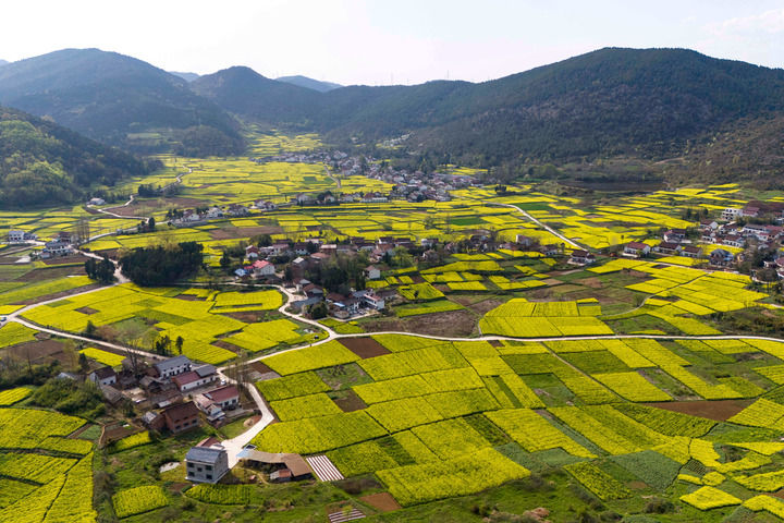 ??3月28日拍攝的漢中市南鄭區(qū)陽春鎮(zhèn)陳村的油菜花海(無人機(jī)照片)。新華社記者 鄒競一 攝