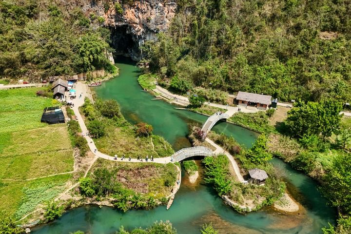 ??2026年3月17日,游客在云南省文山壯族苗族自治州廣南縣壩美景區(qū)游覽(無人機(jī)照片)。近年來,當(dāng)?shù)厣钊胪诰驂蚊来遛r(nóng)文旅融合發(fā)展?jié)摿Γ环矫娲蛟斐两铰糜误w驗(yàn)項(xiàng)目,讓游客在欣賞自然風(fēng)光的同時,感受壯鄉(xiāng)傳統(tǒng)農(nóng)耕文化;另一方面景區(qū)積極吸納本地村民就業(yè),鼓勵其因地制宜創(chuàng)業(yè)增收,推動農(nóng)業(yè)與旅游業(yè)互促共進(jìn)。新華社記者 彭奕凱 攝