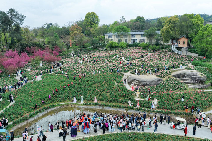 ??2026年3月22日,游客在重慶市巴南區(qū)二圣鎮(zhèn)集體村云林天鄉(xiāng)景區(qū)踏青游玩(無人機(jī)照片)。近年來,重慶市巴南區(qū)二圣鎮(zhèn)集體村依托云林天鄉(xiāng)景區(qū),發(fā)展都市休閑觀光農(nóng)業(yè),深入推進(jìn)農(nóng)文旅深度融合發(fā)展,通過打造油菜花、金魚草等不同品種的四季高山花海主題景區(qū),實(shí)現(xiàn)從過去苗木基地“賣苗木”到鄉(xiāng)村旅游“賣景觀”的轉(zhuǎn)變,帶動村民增收致富。新華社記者 黃偉 攝